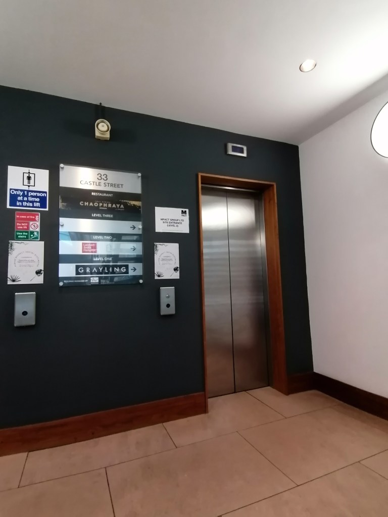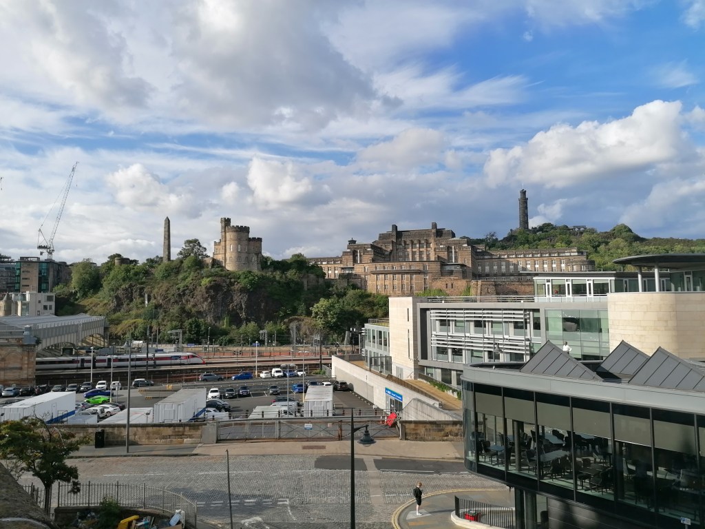 On the 21st of August 2020, my helper and I went to stay in Edinburgh for one night. We left my house at 12:45pm arrived at the hotel around 3:00pm. The journey up was good roads were relatively quiet. After checking into the hotel, we went up to the room unpacked our bags then got ready to go out for dinner to Chaophraya, which a Thai restaurant situated on the rooftop (4th Floor) 33 Castle Street, with views looking out to Edinburgh Castle, George street, Princes street and the Firth of Forth.