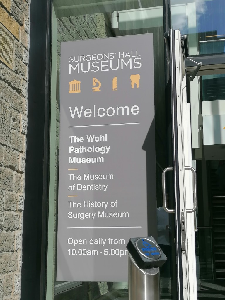 On the 22nd of August 2020, my helper and I went to visit the Surgeon’s Hall Museums located on Nicolson Street, Edinburgh. The Surgeon’s Hall Museums (SHM) are owned by The Royal College of Surgeons of Edinburgh (RCSEd) containing the Wohl Pathology Museum, the History of Surgery Museum and The Dental Collection. The museum was founded in the 1505 holding magnificent collection of artefacts dated back from 1699 opened to the public in 1832, one of Scotland’s oldest museums and was also used as a teaching museum for students of medicine. Some of collections are human remains Wohl Pathology Museum, this may unsettle some visitors or intrigue others. I like learning about the history of medicine and how surgery was done many years ago. Photography and filming are forbidden throughout the museums due to human remains.