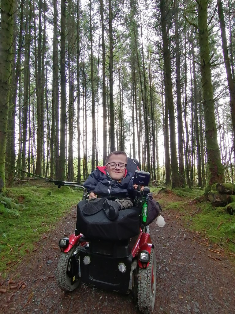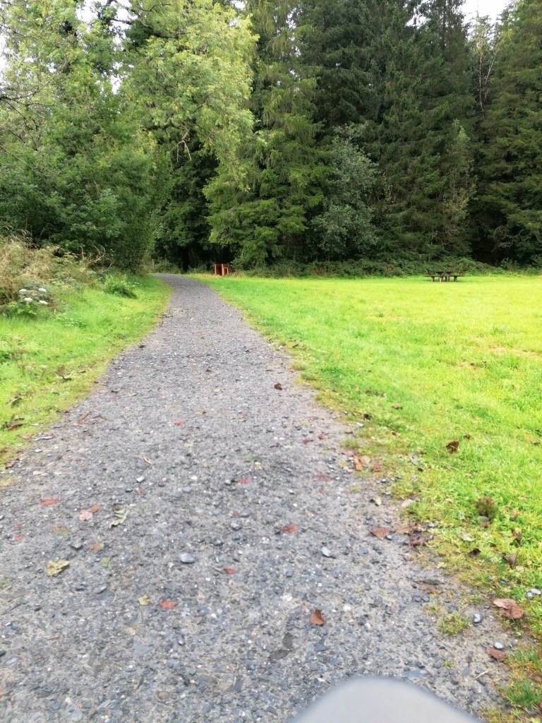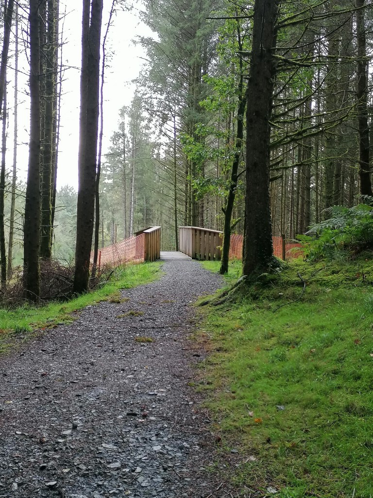 So, we done a bit of the Anniversary Cairn Trail, Little Bruntis Trail and Larg Hill Trail. These trails that I went on have firm gravel paths with muddy sections, uneven ground which can be a bit of an obstacle for wheelchair users. There are some wide forest roads and small steep narrow hills throughout the trails. Some wheelchair users and other mobilities may struggle to navigate through the forest without assistance, especially if it is raining wheelchairs or mobility aids can get stuck in the mud. Throughout my walks I had to stop to look around to admire how beautiful the forest surroundings were.
